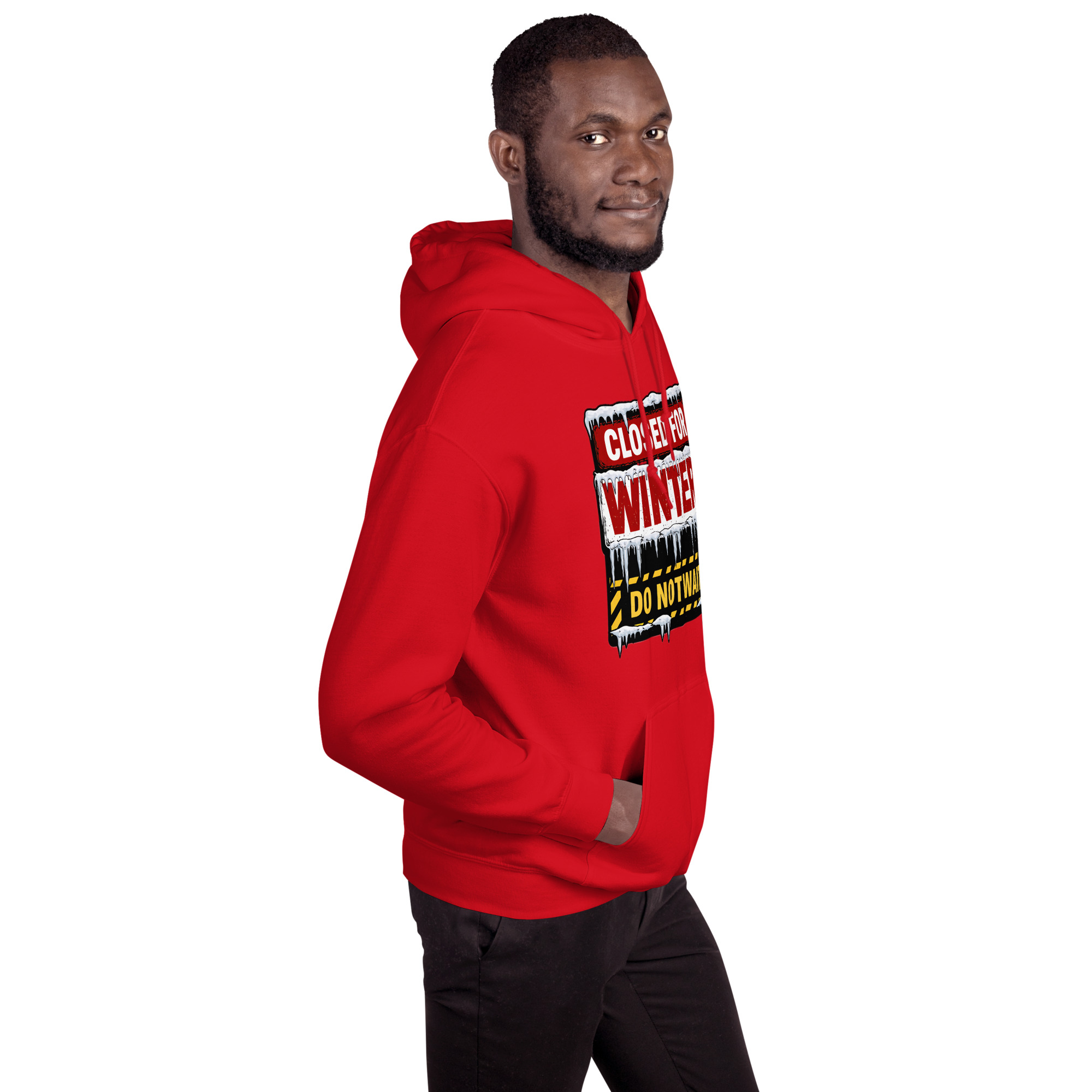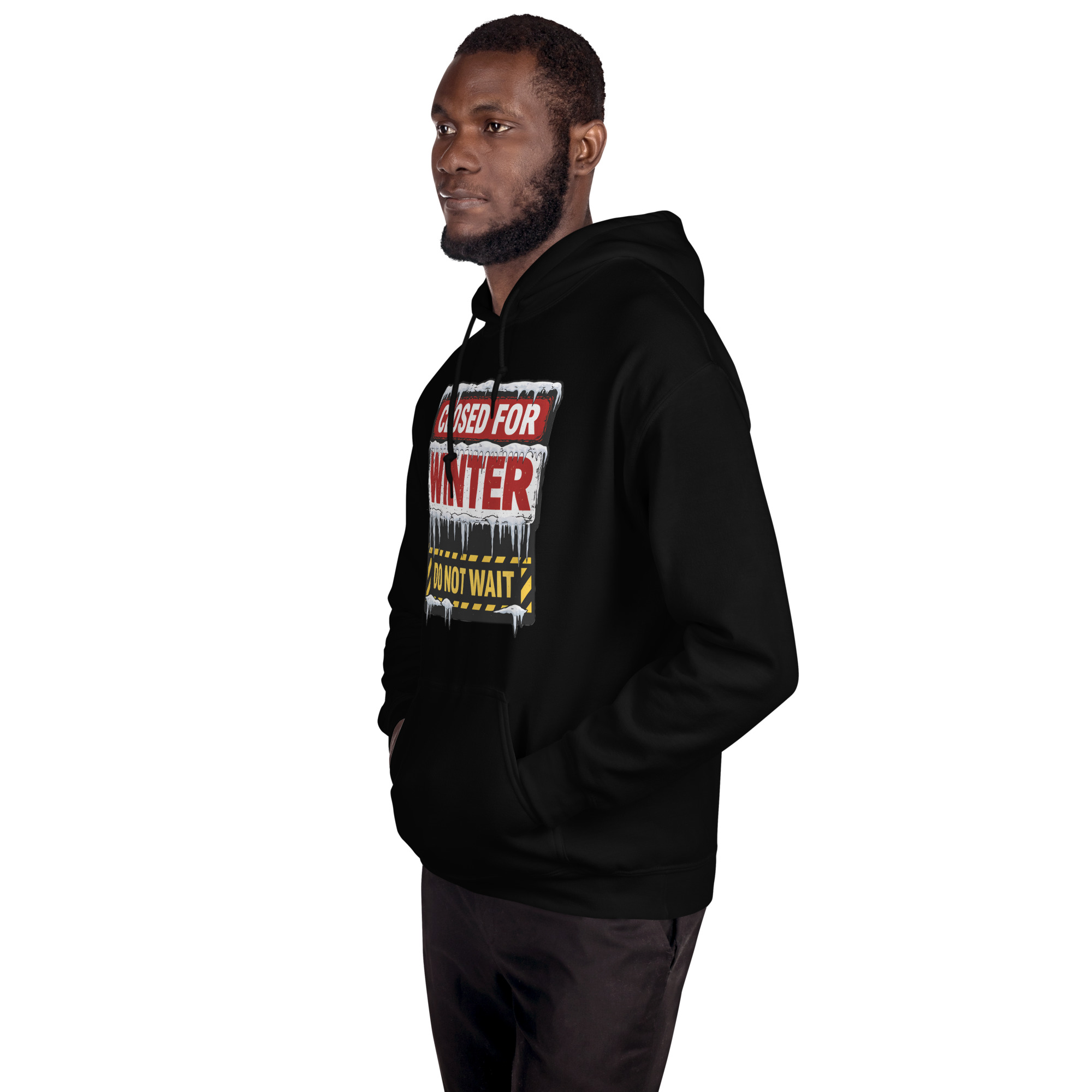 CLOSED FOR WINTER (DO NOT WAIT) – A roadside business closure sign that feels less seasonal and more like a final warning, steeped in isolation horror.