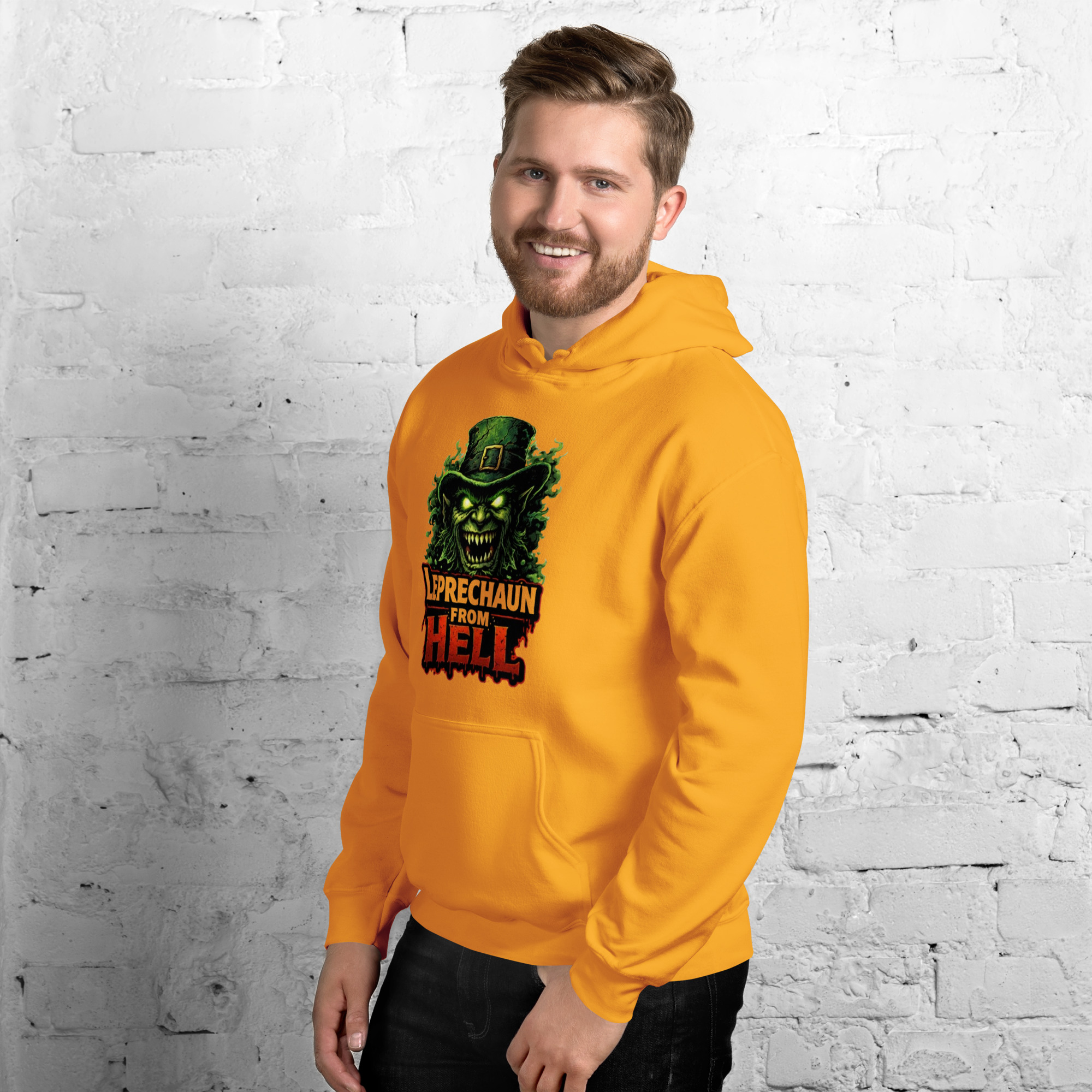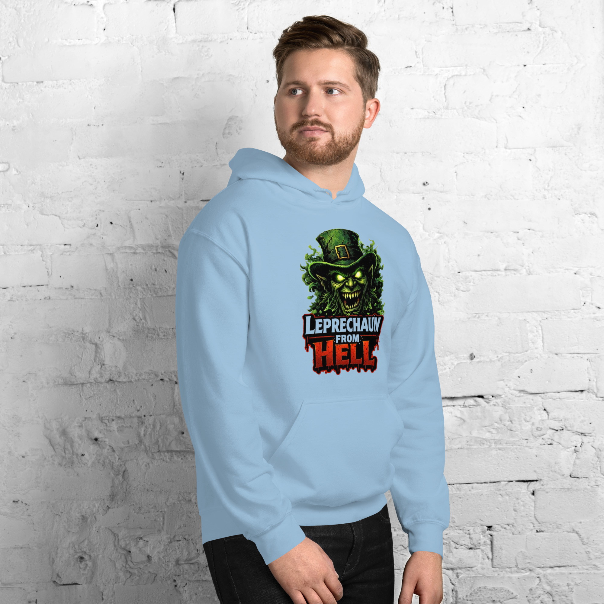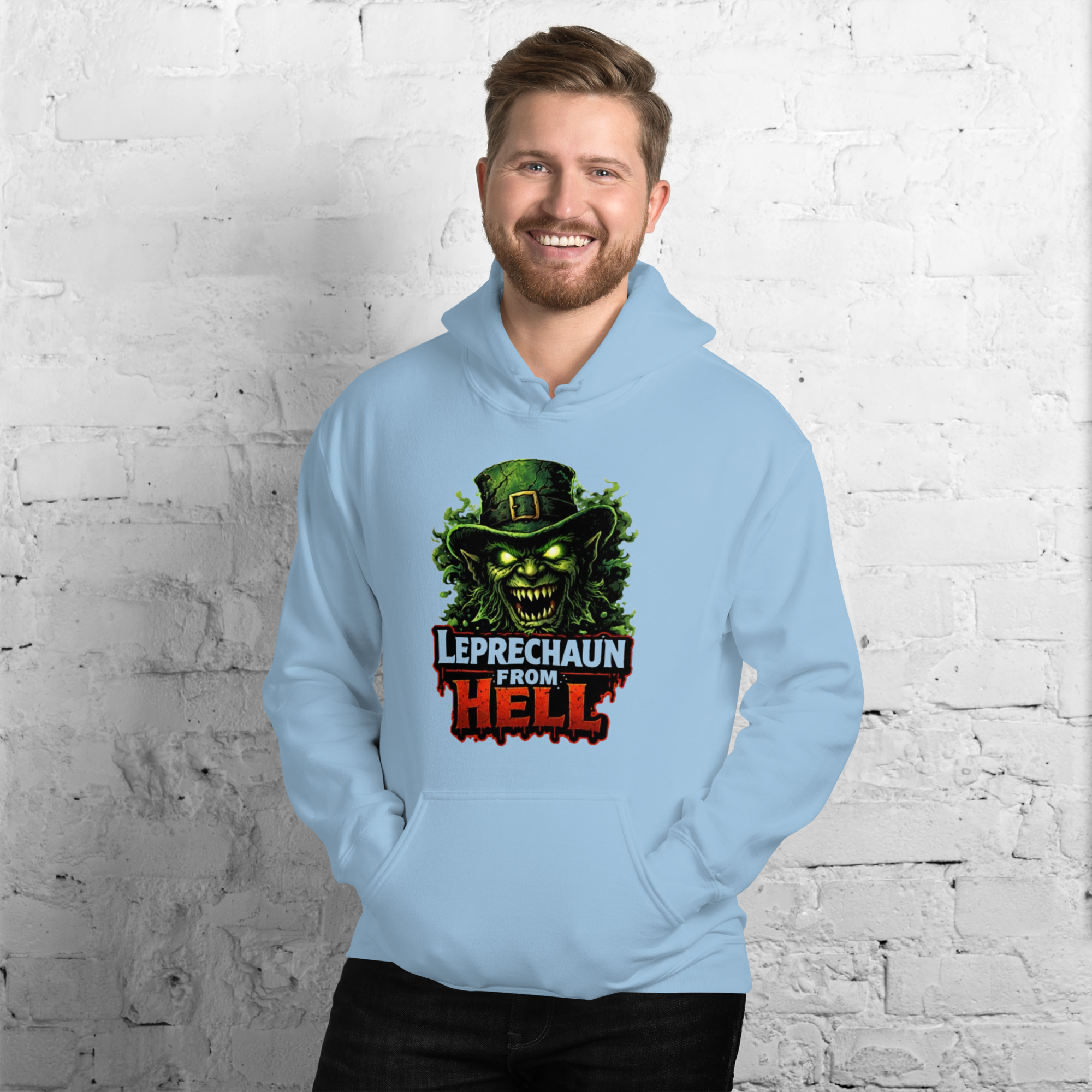 Leprechaun from Hell – A terrifying hellish leprechaun emerges from flames and shadows, wielding gold and malice. Horror-comedy St. Patrick’s Day mashup.