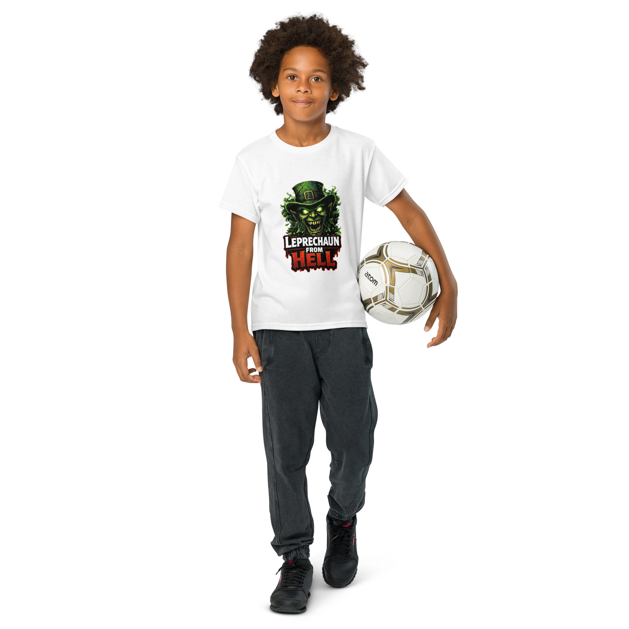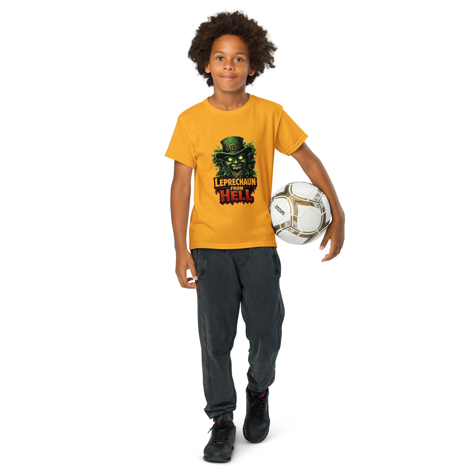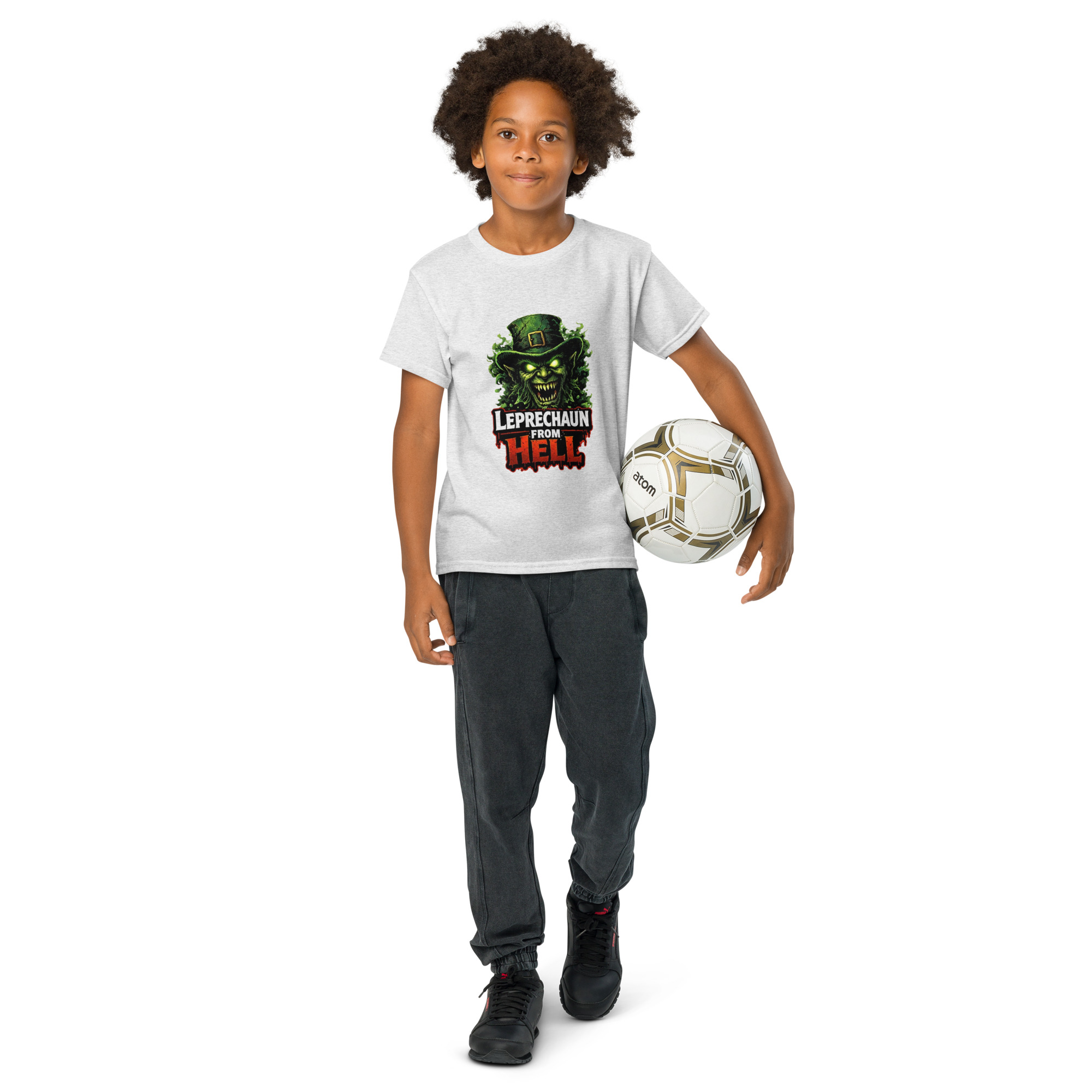 Leprechaun from Hell – A terrifying hellish leprechaun emerges from flames and shadows, wielding gold and malice. Horror-comedy St. Patrick’s Day mashup. Keep kids cool and comfortable with this moisture-wicking t-shirt. Its modern fit and high-performance fabric make it the top choice for active days. • 50% cotton and 50% polyester • Fabric weight: 5.5…