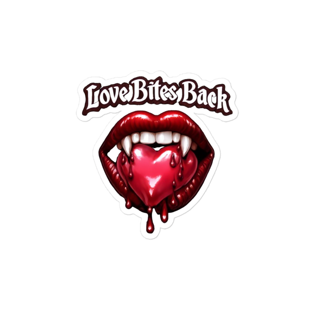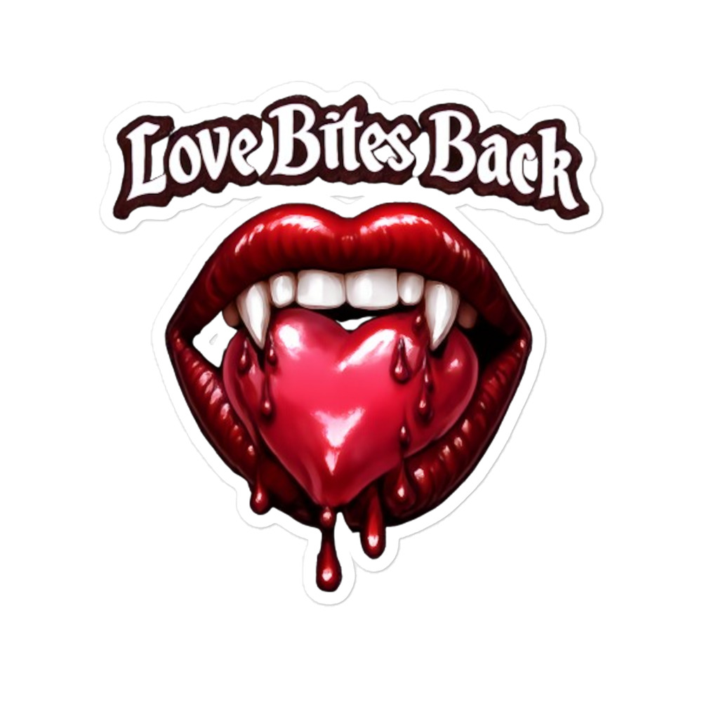 Love Bites Back – A vampire mouth sinking into a heart-shaped candy with classic gothic flair.